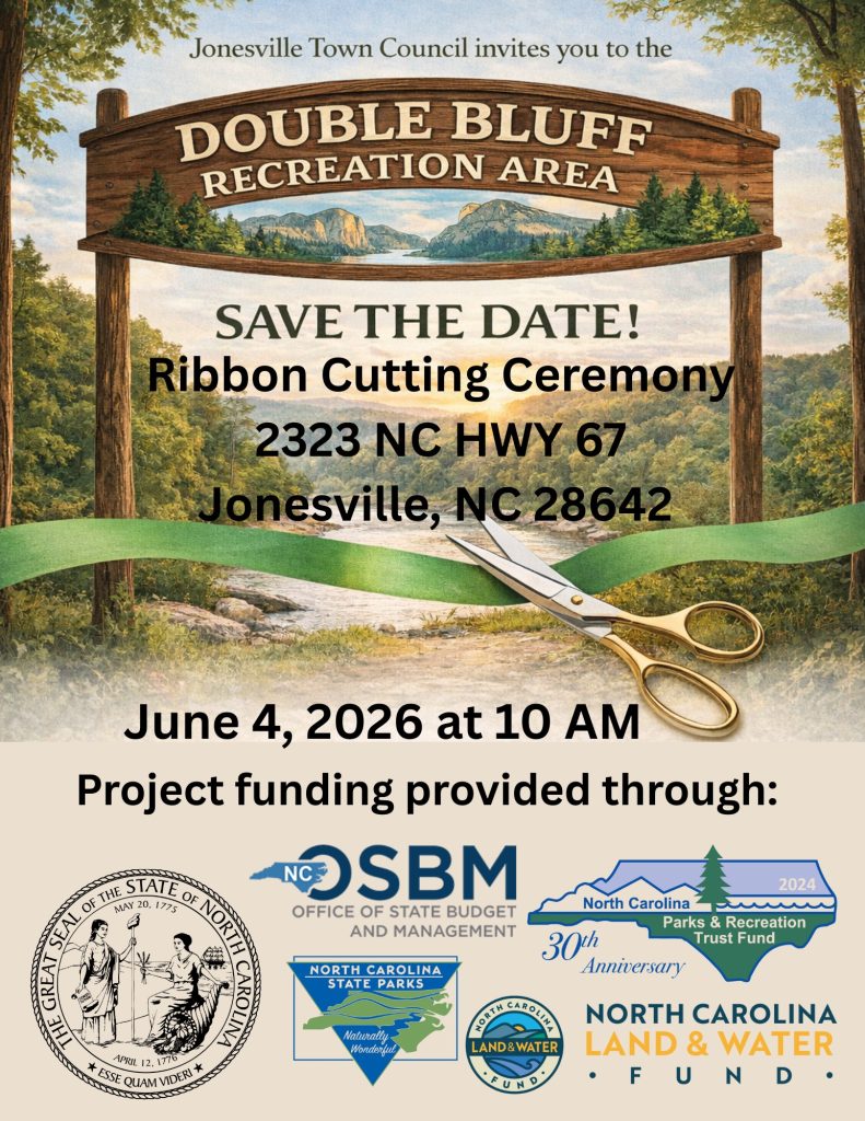 Held on Thursday, June 4, the Double Bluff Recreation Area Ribbon Cutting Ceremony will take place at 10 AM in Jonesville, NC. Hosted by the Jonesville Town Council, this community celebration will include brief remarks, the official ribbon cutting, and a chance to explore the new recreation area. Admission is FREE! Join us at 2323 NC Hwy 67 for a fun morning celebrating this new space for our community.